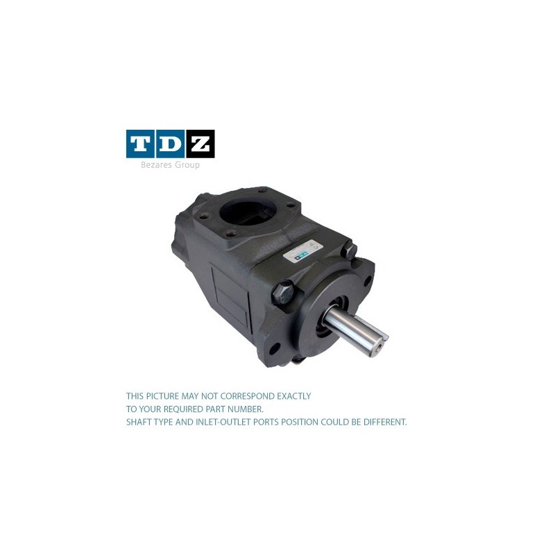 TDZ T67DB double vane pump is an equivalent product to Parker® Denison®. Pressure up to 325 bar, (4650 psi) and flows from 2 gallon/min to 61 gallon/min. Volumetric efficiency over 94% under highest pressure. Keyed and splined shaft options are available. T67DB is a SAE C front flange pump. 32 distinct positions of inlet and outlet ports offer maximum mounting flexibility. T67DB cartridge kits, shafts and seal kits are also available. Pump weight 39 kg, (85 lbs).