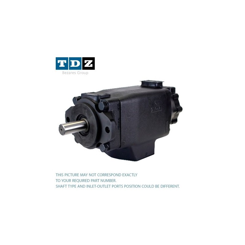 TDZ T67DCC single vane pump is an equivalent product to Parker® Denison®. Pressure up to 280 bar, (4000 psi) and flows from 3 gallon/min to 50 gallon/min. Volumetric efficiency over 94% under highest pressure. Keyed and splined shaft options are available. T67DCC is a SAE C front flange pump. 128 distinct positions of inlet and outlet ports offer maximum mounting flexibility. T67DCC cartridge kits, shafts and seal kits are also available. Pump weight 61 kg, (135 lbs).