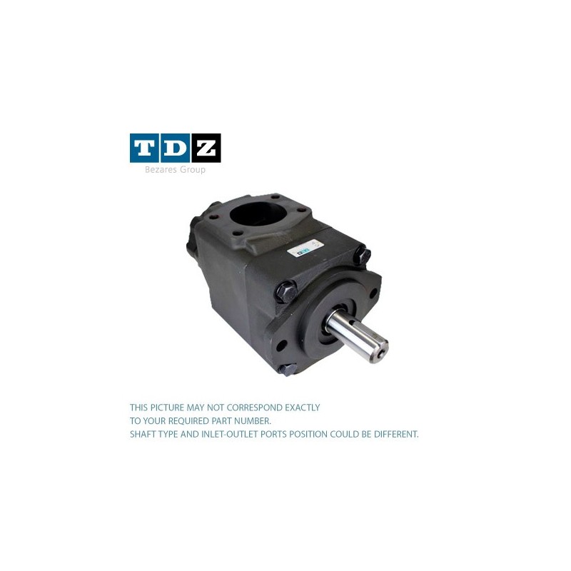 TDZ T7EBS double vane pump is an equivalent product to Parker® Denison®. Pressure up to 325 bar, (4650 psi) and flows from 2 gallon/min to 85 gallon/min. Volumetric efficiency over 94% under highest pressure. Keyed and splined shaft options are available. T7EB is a SAE C front flange pump. 32 distinct positions of inlet and outlet ports offer maximum mounting flexibility. T7EB cartridge kits, shafts and seal kits are also available. Pump weight 55 kg, (121 lbs).