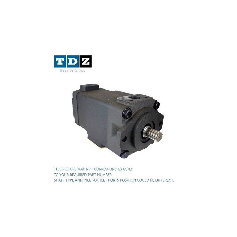 TDZ T7EDS double vane pump is an equivalent product to Parker® Denison®. Pressure up to 305 bar, (4350 psi) and flows from 14 gallon/min to 85 gallon/min. Volumetric efficiency over 94% under highest pressure. Keyed and splined shaft options are available. T7ED is a SAE C front flange pump. 16 distinct positions of inlet and outlet ports offer maximum mounting flexibility. T7ED cartridge kits, shafts and seal kits are also available. Pump weight 66 kg, (146 lbs).
