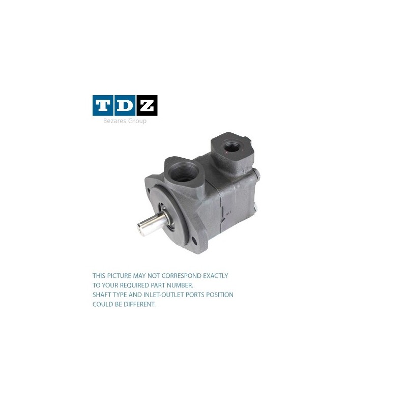 TDZ equivalent V20 single vane pump is a 12 vane Eaton Vickers design technology product. Pressure up to 175 bar, (2500 psi) and flows from 6 gallon/min to 13 gallon/min. Keyed shaft number 1 and many other splined shaft options are available. V20 is a SAE A front flange pump. Inlet and outlet ports may be supplied with NPT, BSP or UNF threads. V20 cartridge kit, shafts and seal kits are available. Pump weight 7.5 kg, (16 lbs).
